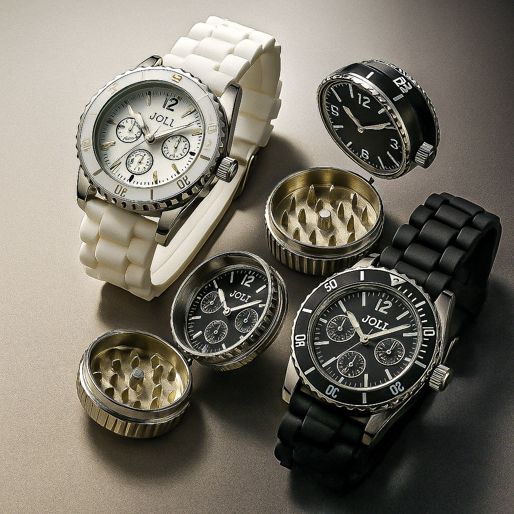 ✔️ Real working timepiece with a hidden grinder inside